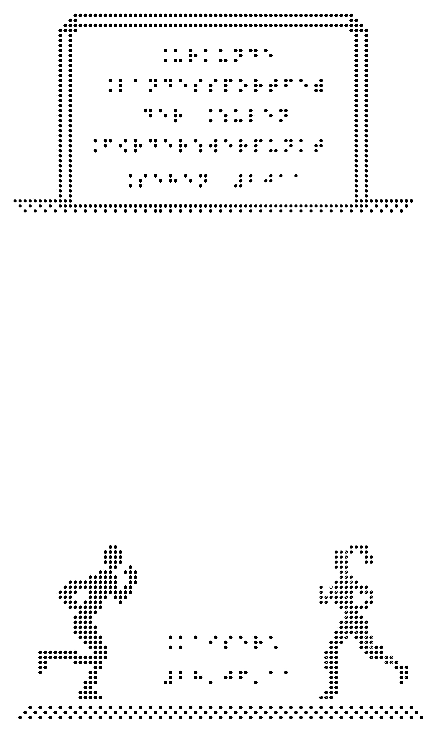 Nach dem Druck der PDF oder Word Datei wird darauf die Braillegrafik gedruckt. Eventuell dann noch die Brailleschrift als dritter Schritt.